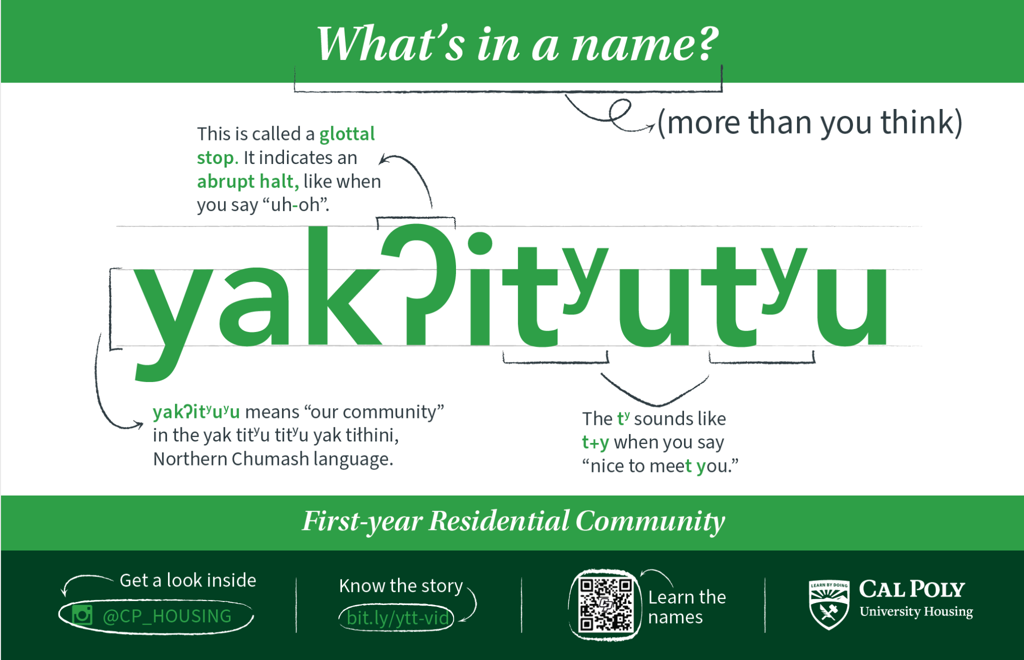 yakʔityutyu was named in honor of and in partnership with the local Northern Chumash tribe. Our team worked closely with tribal representatives, campus administrators, and faculty linguistics experts in a year-long campaign to educate the campus community about the names, build supporting resources, and tell the story of the tribe.